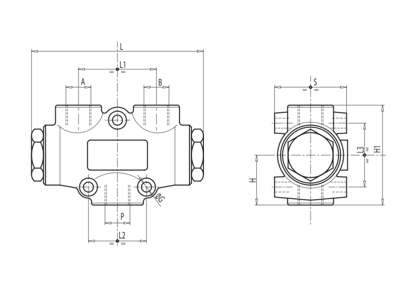 2 drogowy rozdzielacz przepływu 3/8" BSPP V-EQ 8, Rozmiar gwintu: 3/8" BSPP V - EQ 8
