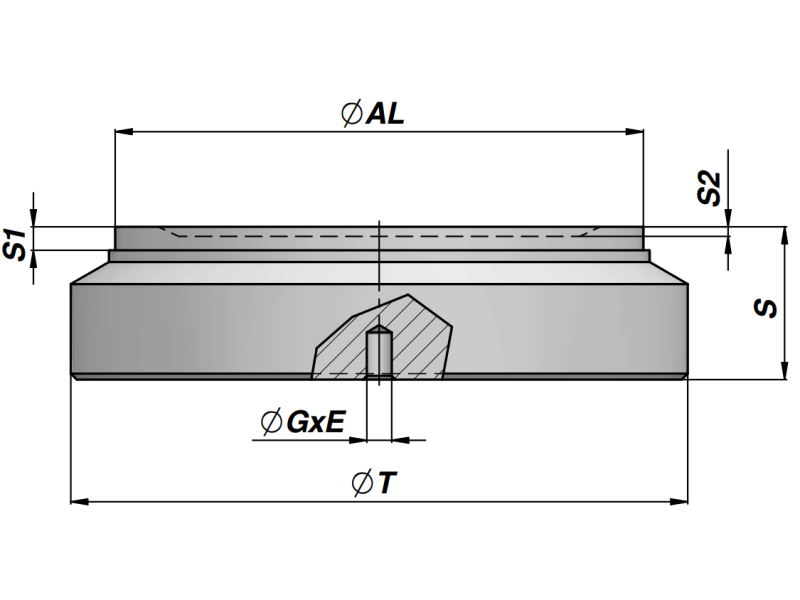 Dno cylindra CFPM, Średnica tłoka: 50 mm, Średnica zewnętrzna cylindra: 60 mm