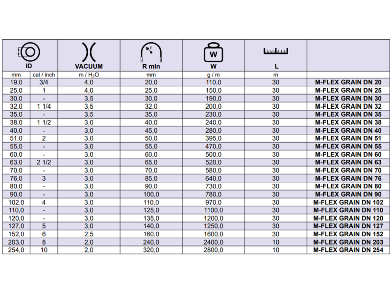 Elastyczny wąż PCV M-FLEX GRAIN, Średnica DN: 127 mm - 5"