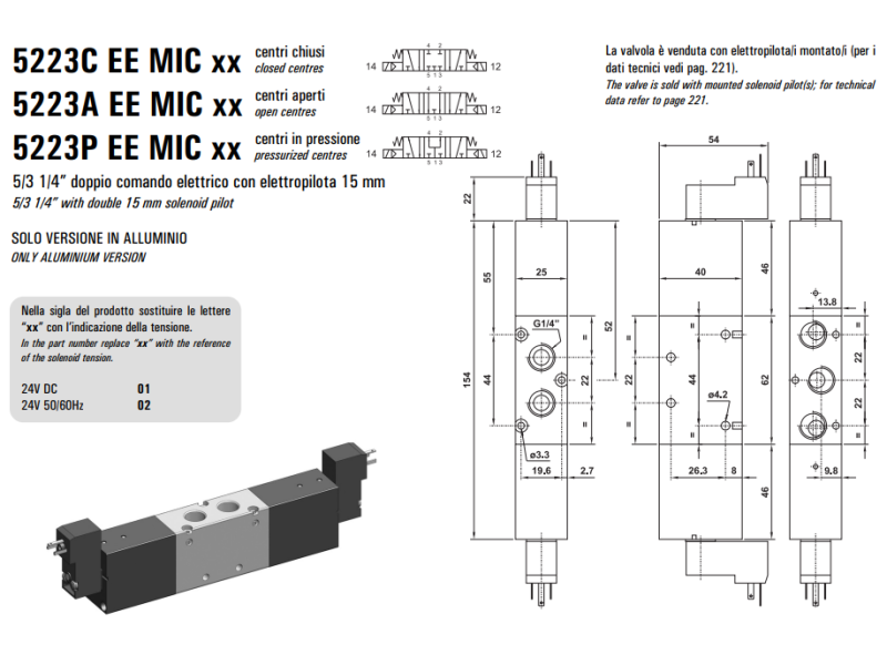 Elektrozawór 5223 C/A/P EE MIC XX, Elektrozawory - NC/NO: CC - centralnie zamknięty