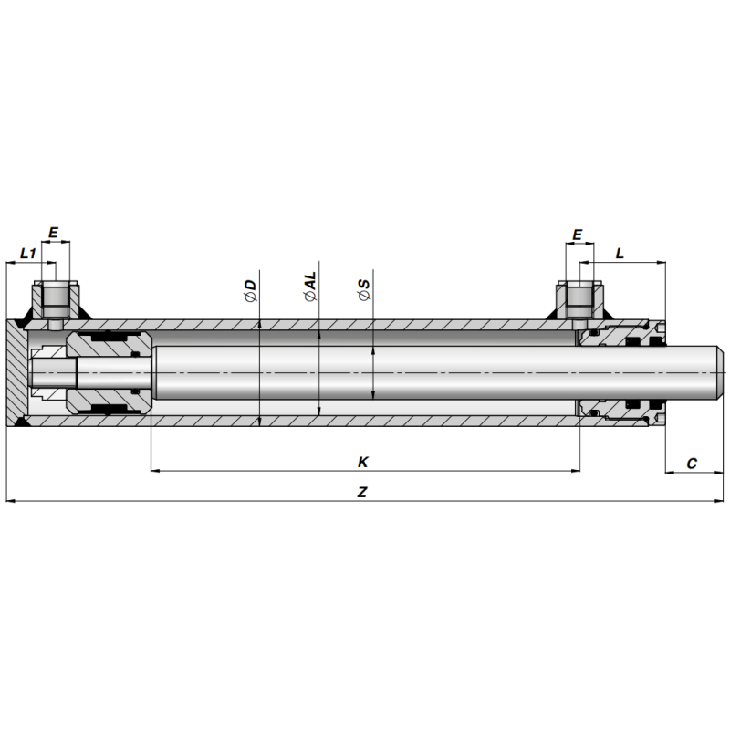 Siłownik hydrauliczny dwustronnego działania bez mocowań Medium C200 HM0LM