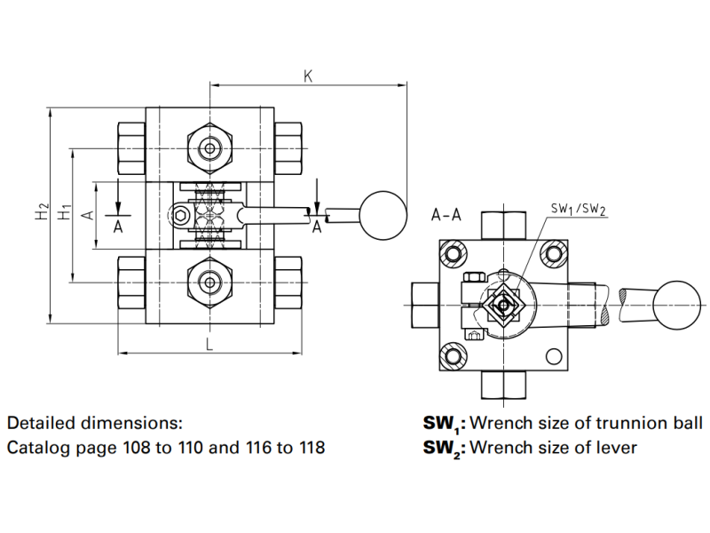 Kombinacja zaworów kulowych gwintowanych z dźwignią w centrum DN4 - DN25/40 do 500Bar, Materiał: Stal ocynkowana Cr(VI)-free, Rozmiar zaworu: DN20 1.1/16" UN