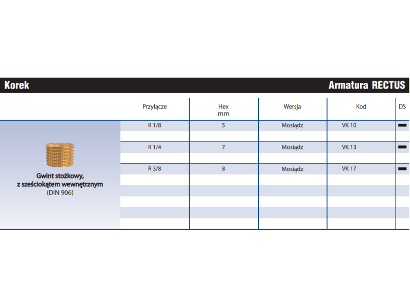 Gwint stożkowy, wint stożkowy, z sześciokątem wewnętrznym sześciokątem wewnętrznym (DIN 906)