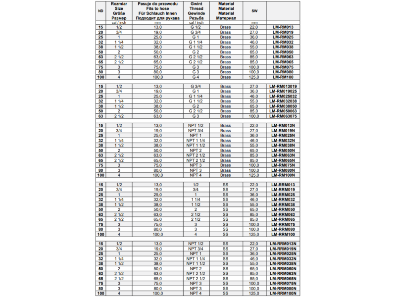 Łączniki do węży - gładki króciec GW, Średnica DN: 20 mm