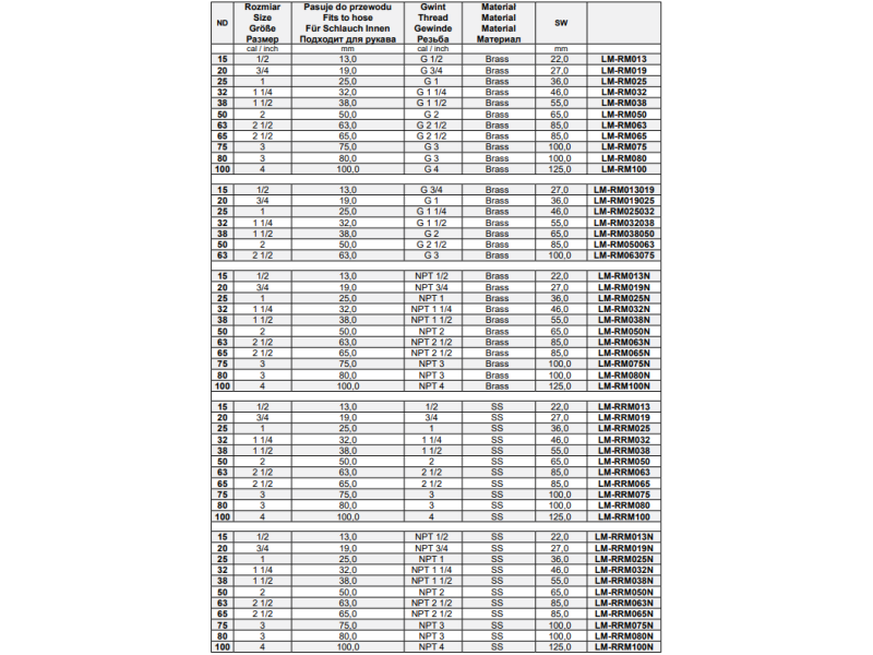 Łączniki do węży - gładki króciec GZ, Średnica DN: 20 mm