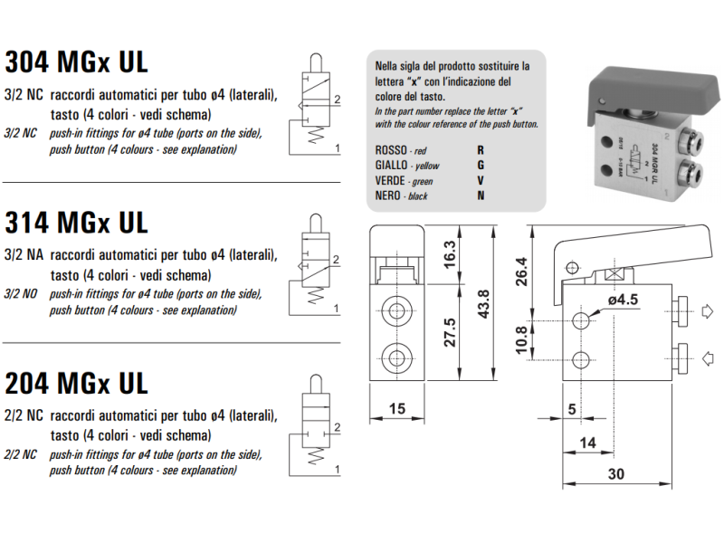 Mikrozawór MGx UL, Elektrozawory - pozycje zaworu: 3/2, Elektrozawory - NC/NO: NC - normalnie zamknięty