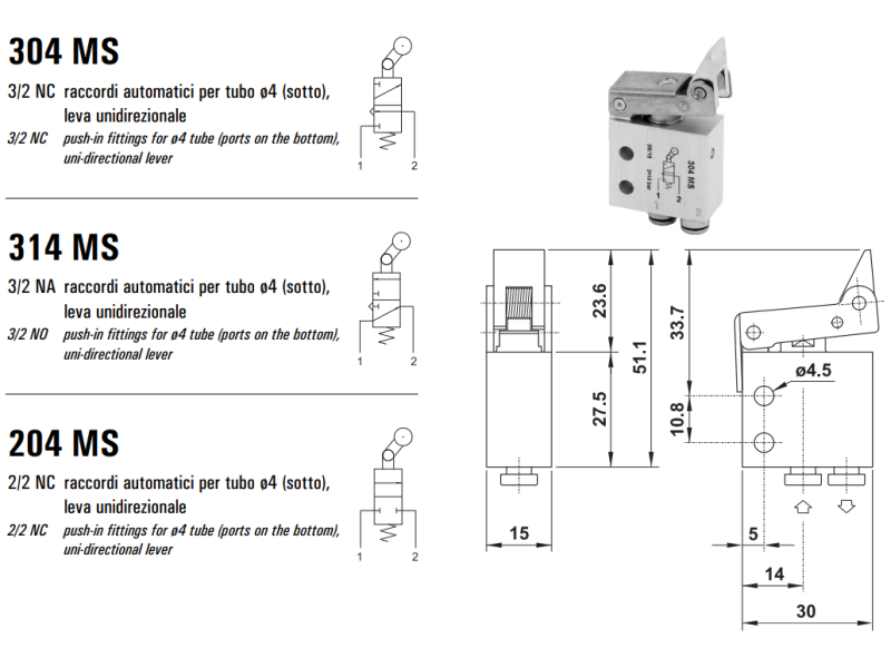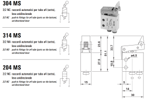 Mikrozawór MS, Elektrozawory - pozycje zaworu: 3/2, Elektrozawory - NC/NO: NC - normalnie zamknięty