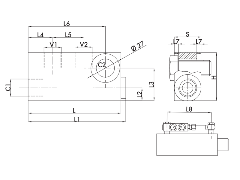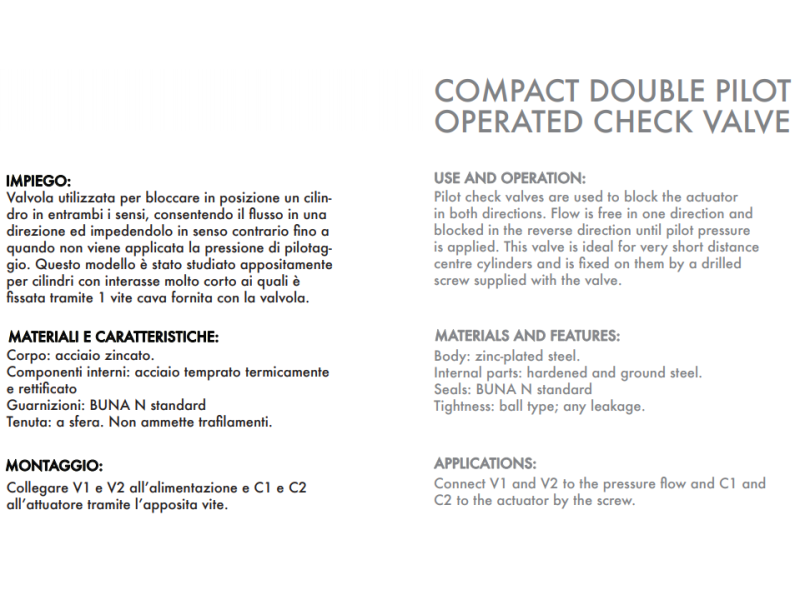 Podwójny zawór sterowany VBPDE CMP/FLV 1/4" BSPP, Rozmiar gwintu: 1/4" BSPP