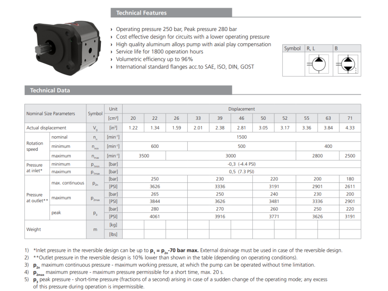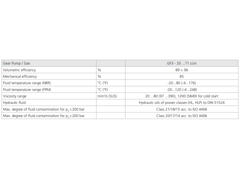 Pompa zębata z ciśnieniem szczytowym do 280 Bar o prędkości obrotowej do 3500 obr/min.