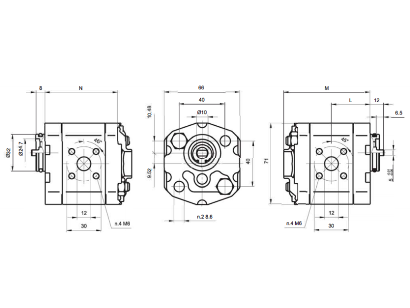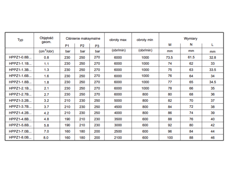 Pompa zębata grupa 1, śruby 40x40mm, zamek 32mm, Objętość geometryczna: 5,8 cm³/obr.
