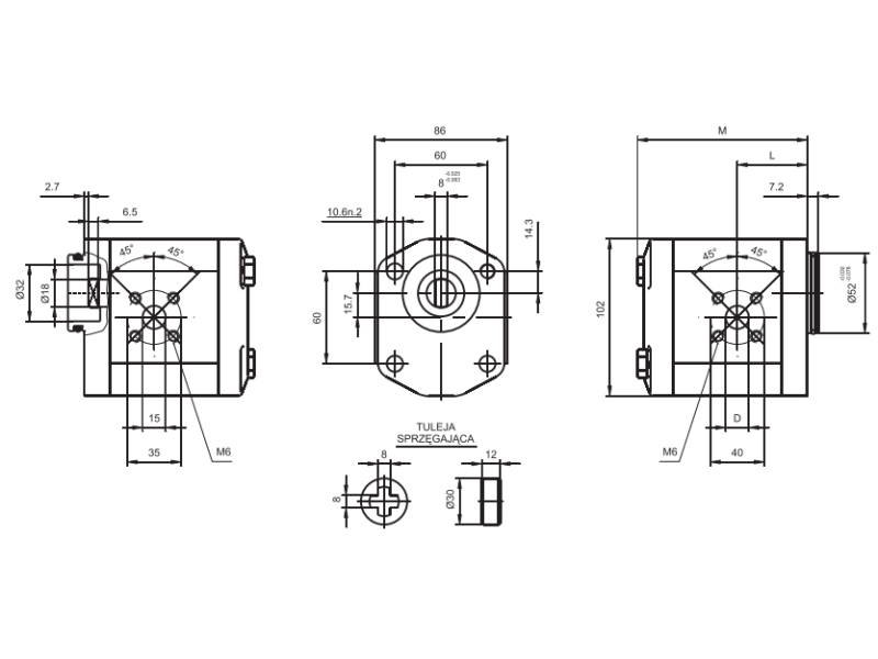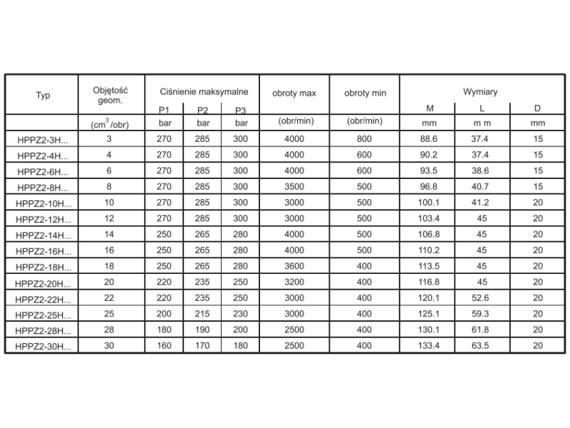 Pompa zębata grupa 2 , śruby 60x60mm zamek 52mm, Objętość geometryczna: 30,0 cm³/obr.
