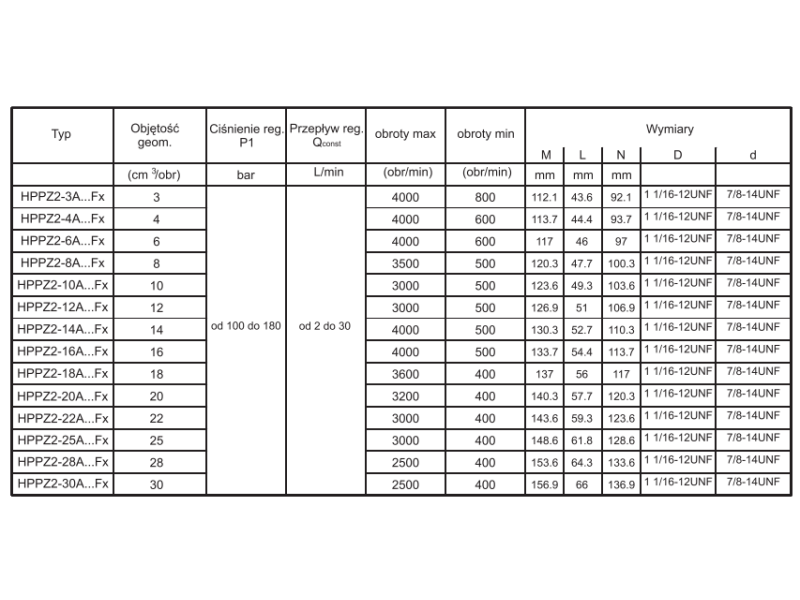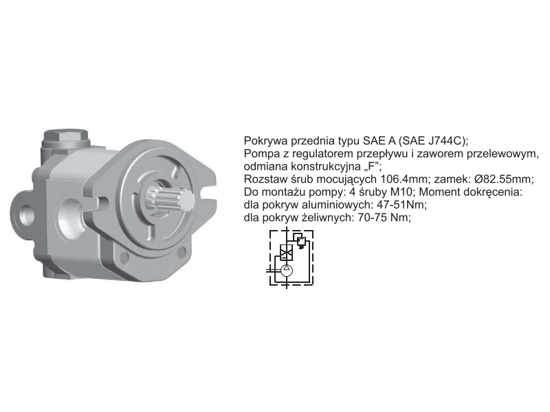 Pompa zębata grupa 2 ,śruby 106,4mm zamek 82,55mm Regulator ciśnienia, Objętość geometryczna: 3,0 cm³/obr.