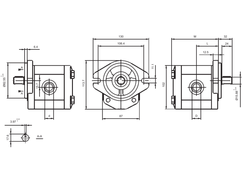 Pompa zębata grupa 2 śruby 106,4mm zamek 82,55mm, Objętość geometryczna: 4,0 cm³/obr.