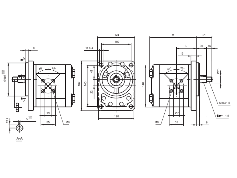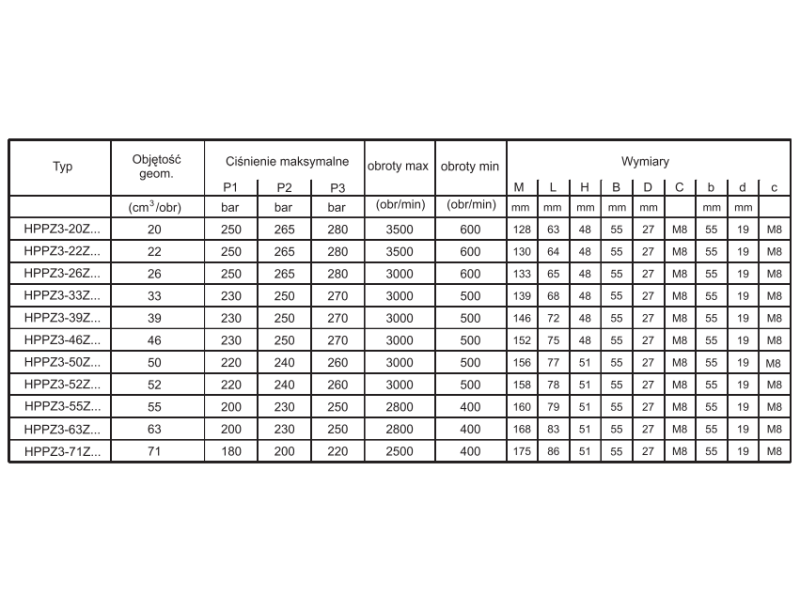 Pompa zębata grupa 3 śruby 145x102mm zamek 105mm, Objętość geometryczna: 22,0 cm³/obr.
