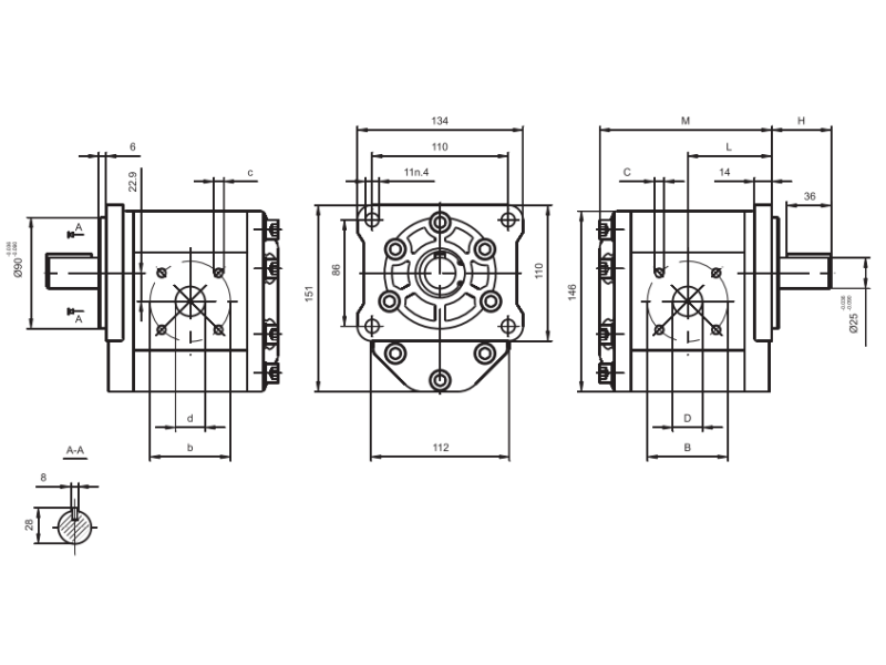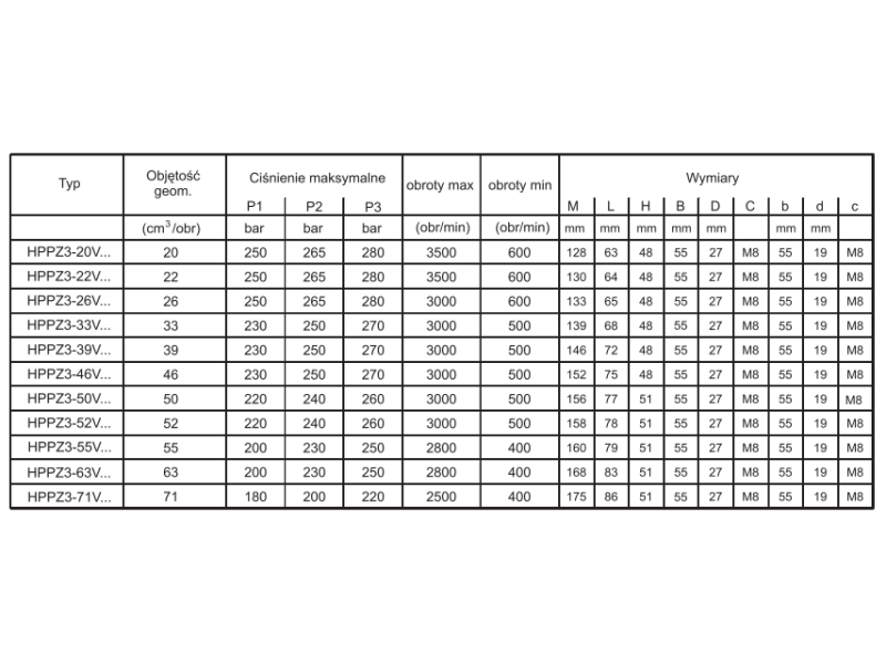 Pompa zębata grupa 3 śruby 86x110mm zamek 90mm, Objętość geometryczna: 22,0 cm³/obr.
