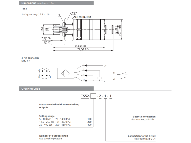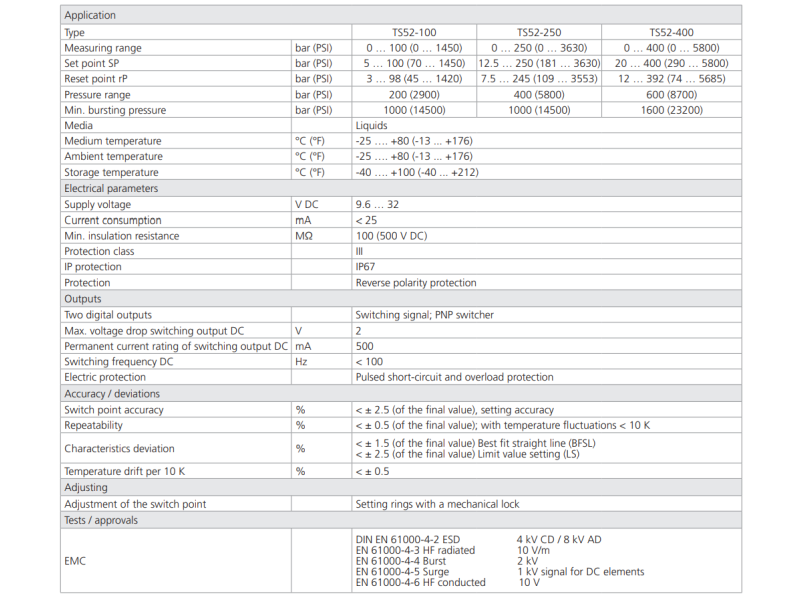 Przekaźnik ciśnienia TS52