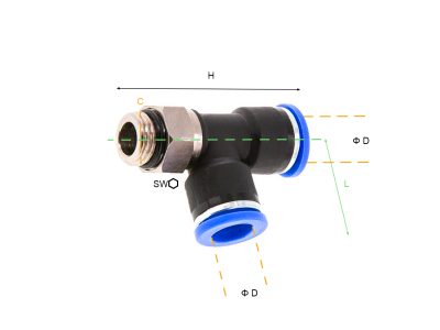 Przyłącze wtykowe trójnikowe ET metryczne/GZ BSPP O-RING