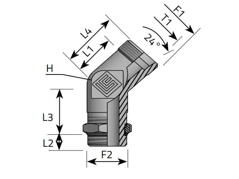 Kod produktu: HS-KAT-VEEM-M-M-CRV-08LM14x1,5-M12x1,5 ID: 2474501Przyłącze kątowe 45° z gwintem zewnętrznym Metrycznym ze stożkiem 24° na gwint zewnętrzny Metryczny w korpus, kontrowany nakrętką.