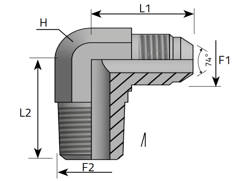 Kod produktu: HS-KAT-WE-JIC-BSPT-CRV-7/8JIC-3/8BSPT ID: 2352487Przyłącze kątowe 90° z gwintem zewnętrznym calowym JIC ze stożkiem 74° na gwint zewnętrzny calowy stożkowy BSPT.