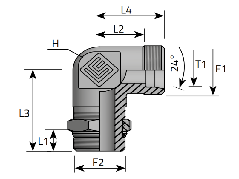 Kod produktu: HS-KAT-WEER-M-BSPP-CRV-12LM18x1,5-1/4BSPP ID: 2474329Przyłącze kątowe 90° z gwintem zewnętrznym Metrycznym ze stożkiem 24° na gwint zewnętrzny calowym BSPP w korpus, kontrowany nakrętką.