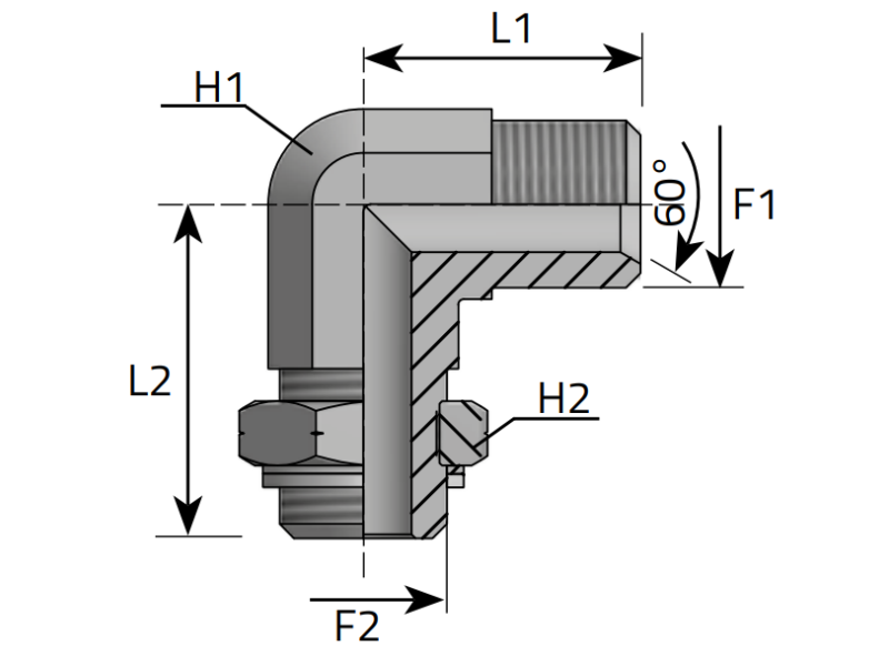 Kod produktu: HS-SPE-WEER-M60-M-CRV-M12x1,5-M14x1,5 ID: 2475566Przyłącze kątowe 90° z gwintem zewnętrznym Metrycznym z nakrętką nastawną na gwint zewnętrzny Metryczny ze stożkami 60°.