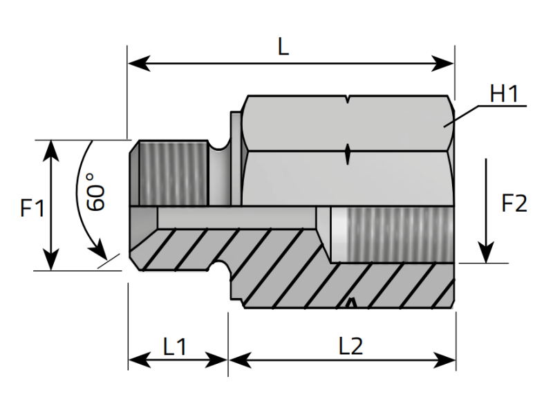Kod produktu: HS-SPE-GAI-M60-M-CRV-M22x1,5-L60 ID: 2475675Przyłącze proste z gwintem zewnętrznym Metrycznym ze stożkiem 60° na gwint wewnętrzny Metryczny.