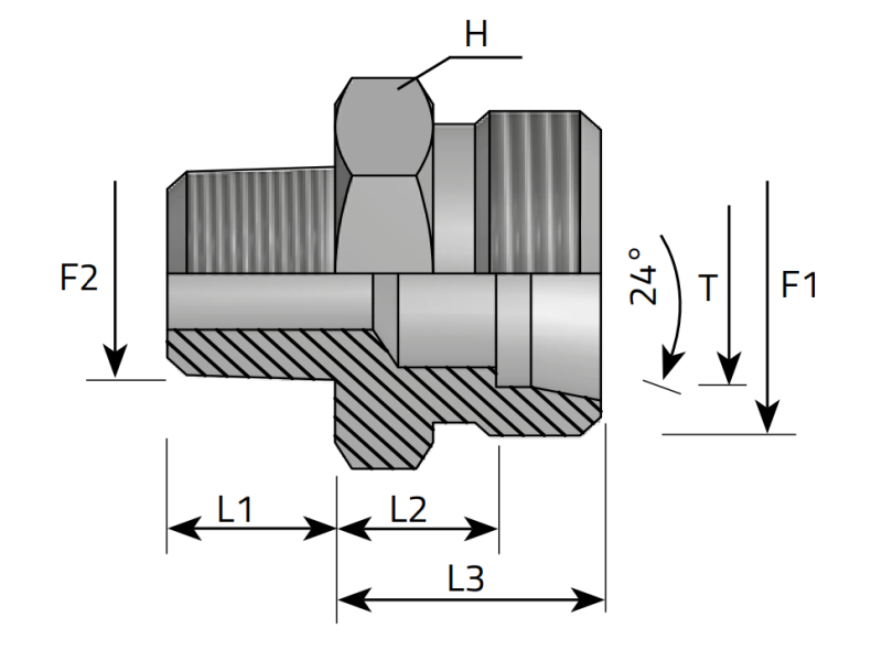 Kod produktu: HS-PRO-GE-M-BSPT-VA-10LM16x1,5-1/8BSPT ID: 2339400Przyłącze proste redukcyjne z gwintem zewnętrznym metrycznym i stożkiem 24° na gwint zewnętrzny calowy stożkowy BSPT.