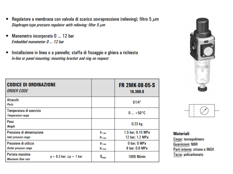 Regulator filtra mini G1/4” FR 2MK-08-05-S
