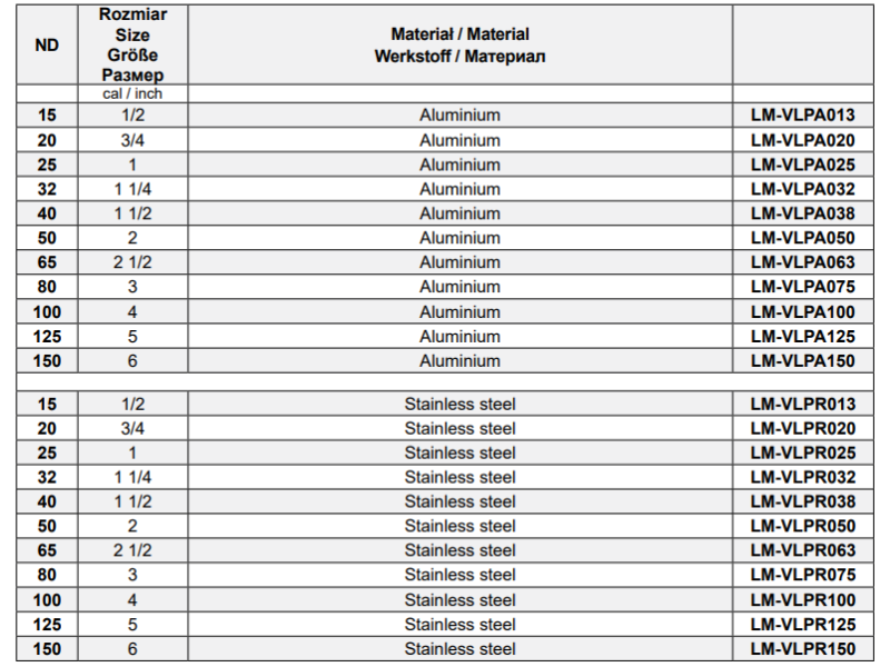 Szybkozłącza CAMLOCK Typ DP, Średnica DN: 150 mm