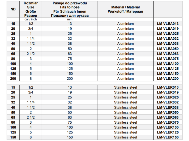Szybkozłącza CAMLOCK Typ E, Średnica DN: 200 mm