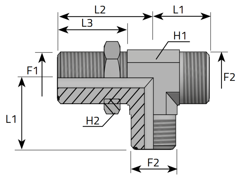 Trójnik niesymetryczny grodziowy TSVL 1.3/16" ORFS, Materiał: Stal węglowa Cr(VI)-free/Zn-Ni, Rozmiar gwintu: 1.3/16" ORFS