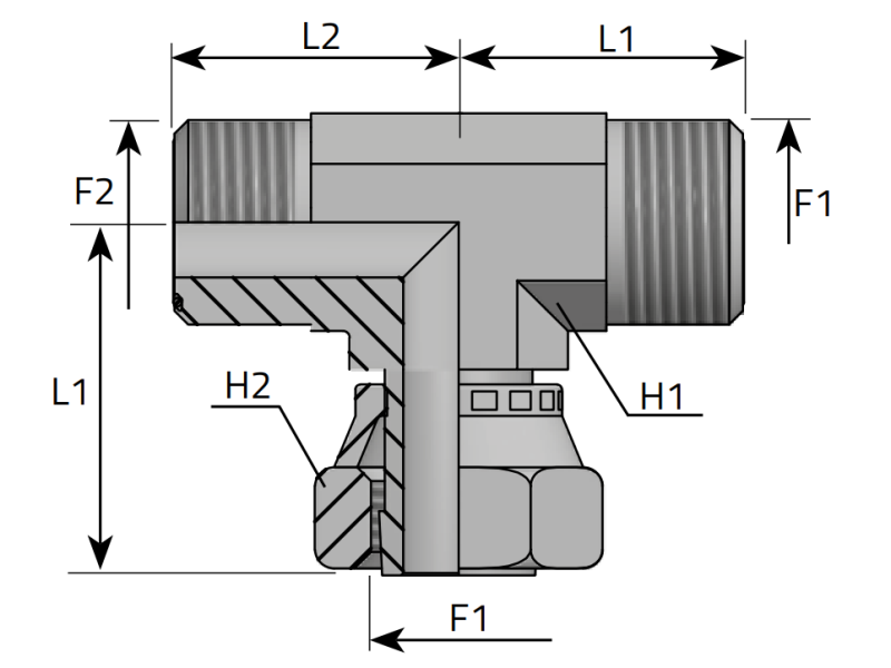 Trójnik symetryczny ET 9/16" ORFS, Materiał: Stal węglowa Cr(VI)-free/Zn-Ni, Rozmiar gwintu: 9/16" ORFS