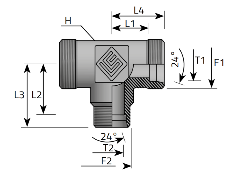 Kod produktu: HS-TRO-TRT-M-CRV-10L-10L-06L ID: 2333683Trójnik redukcyjny symetryczny z gwintami zewnętrznymi Metrycznymi ze stożkiem 24°.