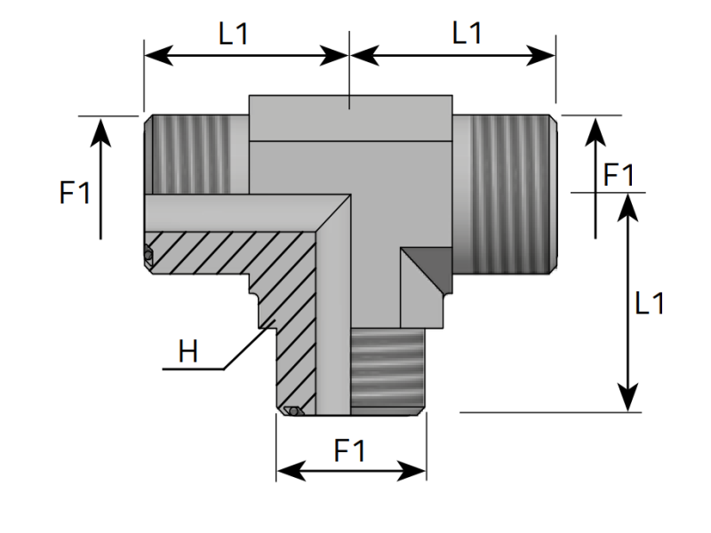 Trójnik symetryczny T 1.7/16" ORFS, Materiał: Stal węglowa Cr(VI)-free/Zn-Ni, Rozmiar gwintu: 1.7/16" ORFS