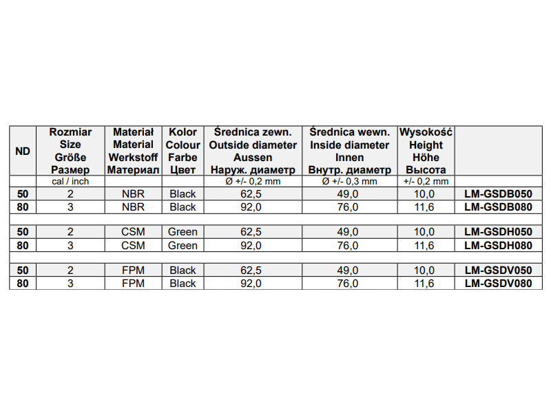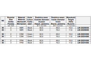 Uszczelki do złącz cysternowych GSD, Średnica DN: 80 mm