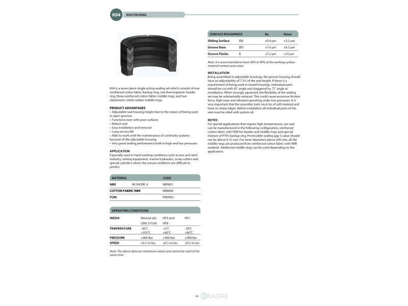 Uszczelnienie K04 31,75x44,45x25,4u/25,4k, Symbole uszczelnień kastas OK: 031, Materiał: TKANINA-NBR, NBR, POM
