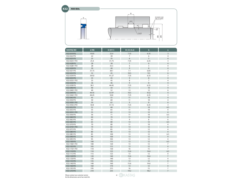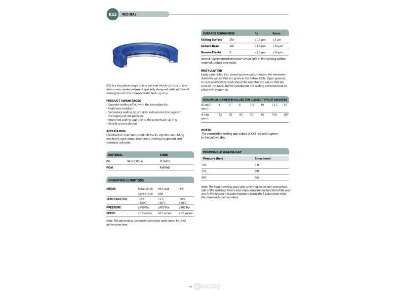 Uszczelnienie K32 PU/POM 28x38x6u/7k, Symbole uszczelnień kastas OK: 028, Materiał: PU/POM