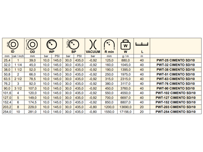 Wąż do materiałów ściernych CIMENTO SD 10 bar, Średnica DN: 25 mm - 1"
