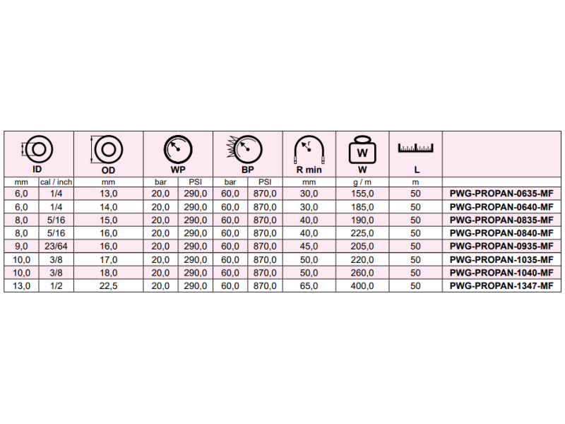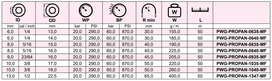 • Wąż spawalniczy przeznaczony do przepływu ciekłego propanu - butanu.