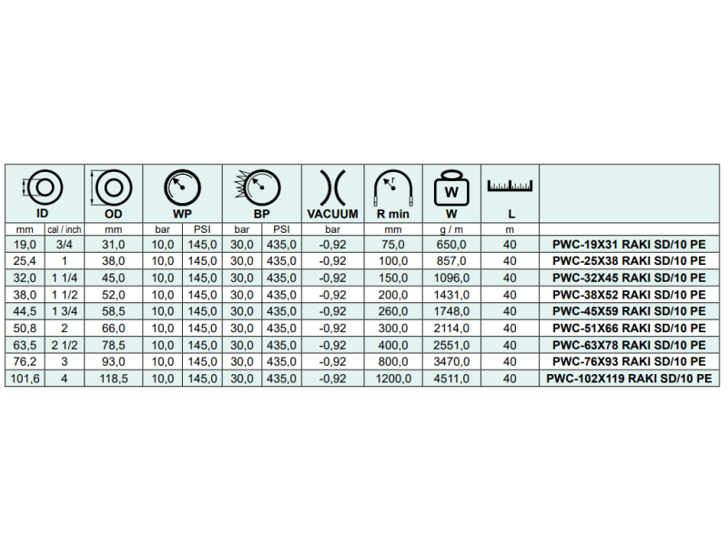 Wąż ssawno - tłoczny do cieczy spożywczych z wysoką zawartością alkoholu RAKI SD/10 PE, Średnica DN: 25 mm - 1"