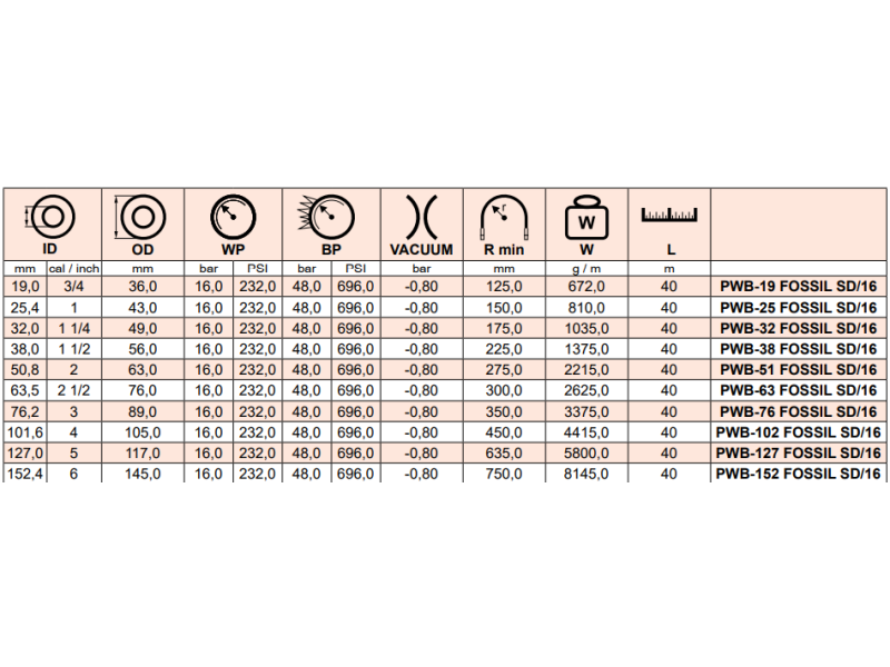 Wąż ssawno - tłoczny do produktów ropopochodnych FOSSIL SD/16, Średnica DN: 19 mm - 3/4"