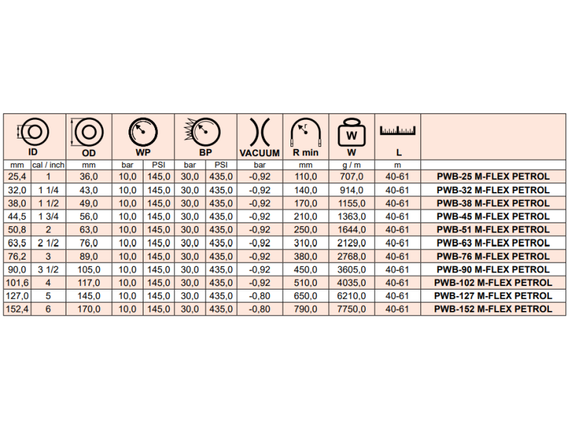 Wąż ssawno - tłoczny do produktów ropopochodnych M-FLEX PETROL S/D, Średnica DN: 152,4 mm - 6"