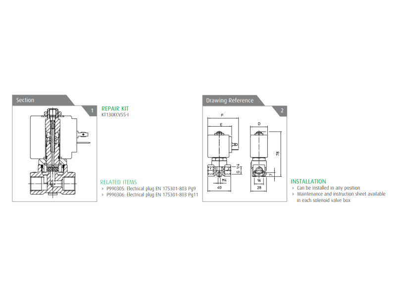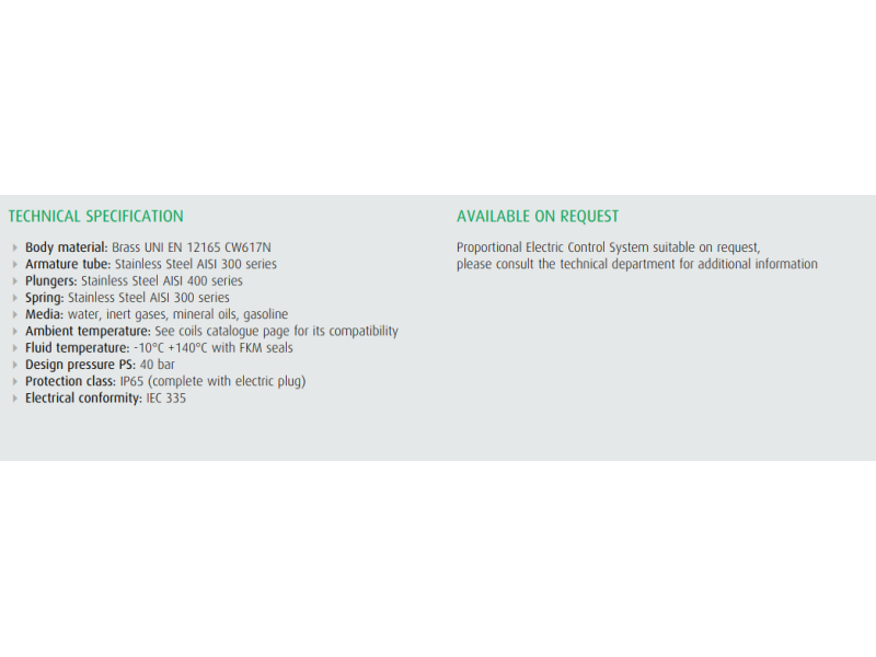 Temperatura medium: FKM (Viton): -10°C ÷ +140°CMaksymalne ciśnienie wejściowe: 40 bar
