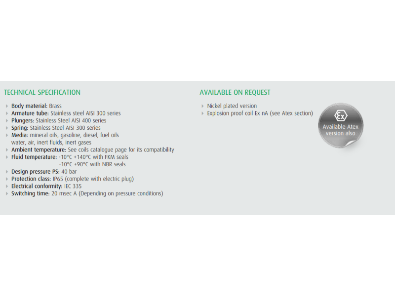 FKM (Viton): -10°C ÷ +140°C;Maksymalne ciśnienie wejściowe: 40 bar