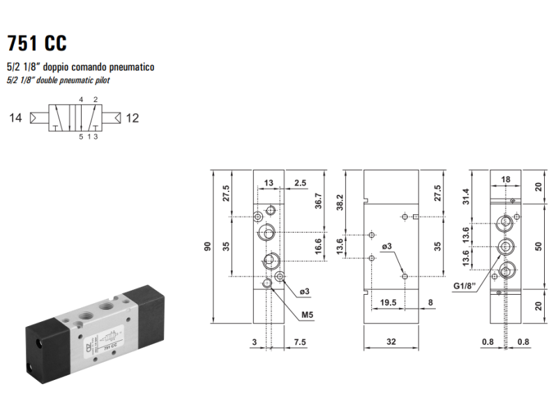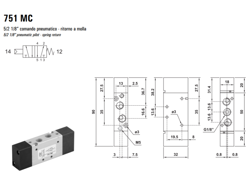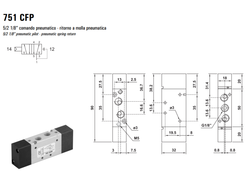 Zawór 751 MC/CC/CCD/CFP pneumatyczny 18mm