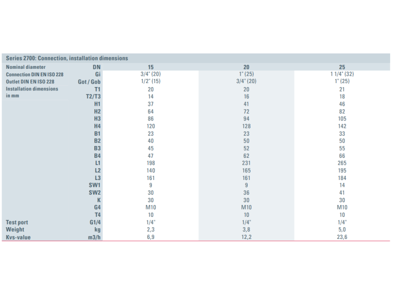 Zawór bezpieczeństwa Seria 2700, Rozmiar gwintu (2): 3/4" BSPP - 1/2" BSPP, Średnica nominalna DN: DN20