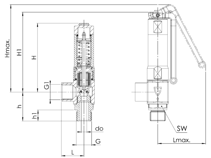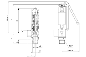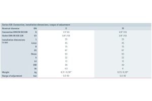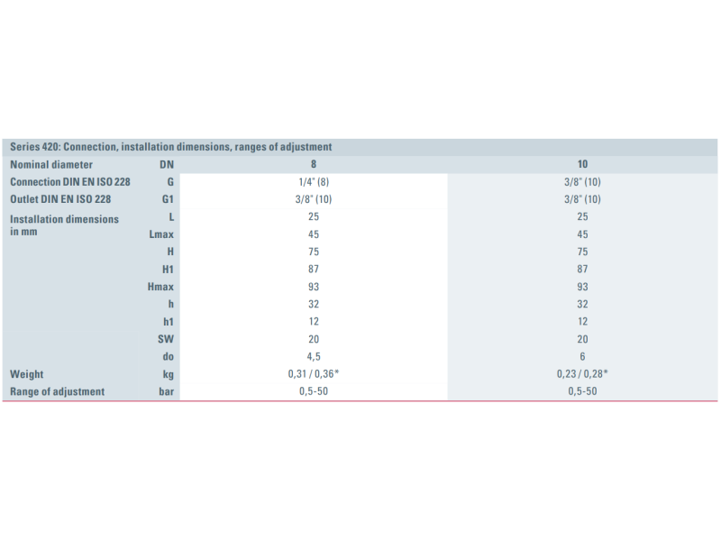 Zawór bezpieczeństwa Seria 420, Rozmiar gwintu (2): 1/4" BSPP - 3/8" BSPP, Średnica nominalna DN: DN08
