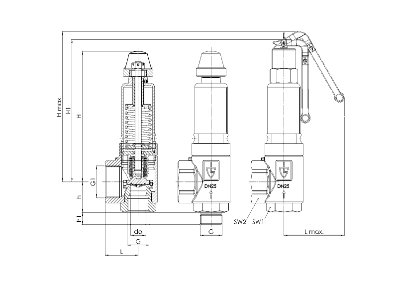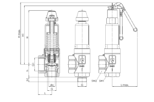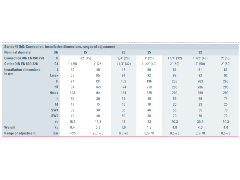 Zawór bezpieczeństwa Seria 451bG, Rozmiar gwintu (2): 1.1/4" BSPP - 2" BSPP, Średnica nominalna DN: DN15