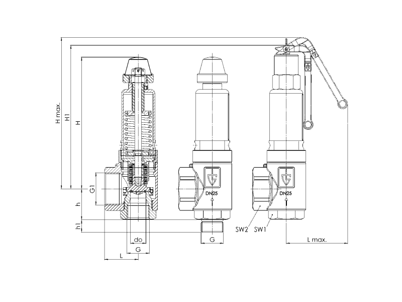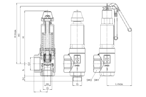 Zawór bezpieczeństwa Seria 451bH, Rozmiar gwintu (2): 1.1/4" BSPP - 2" BSPP, Średnica nominalna DN: DN15