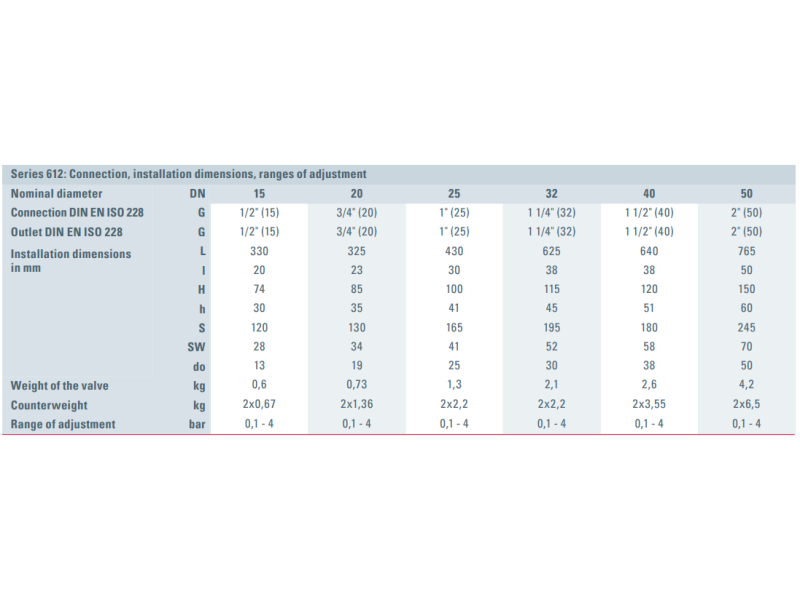 Zawór bezpieczeństwa Seria 612, Rozmiar gwintu (2): 2" BSPP, Średnica nominalna DN: DN32